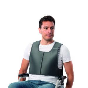 Menține poziția pacientului în scaunul cu rotile. Ofera o mai mare siguranta in miscare, stabilitate corpului si previne alunecarea si caderile.